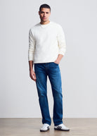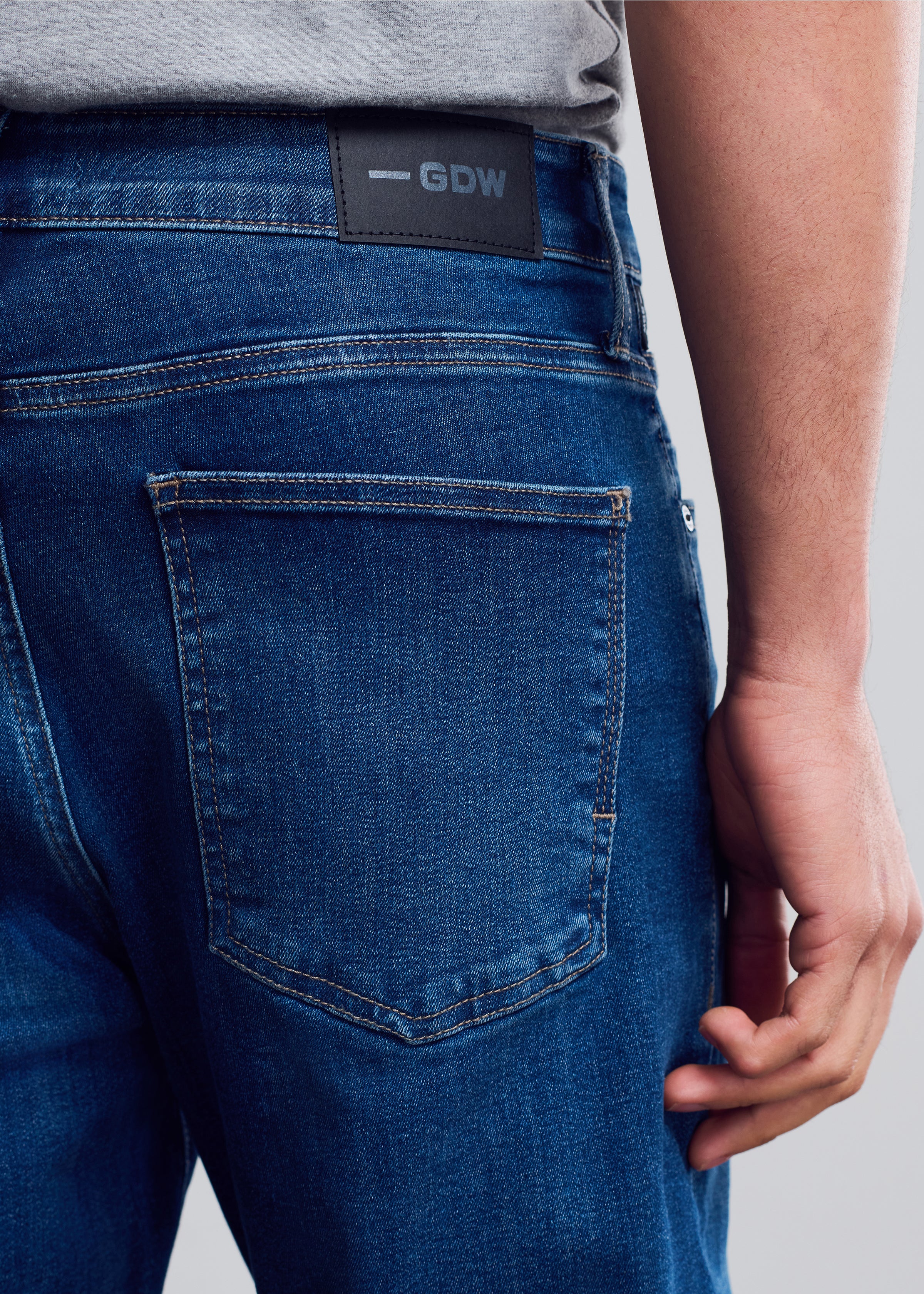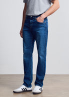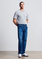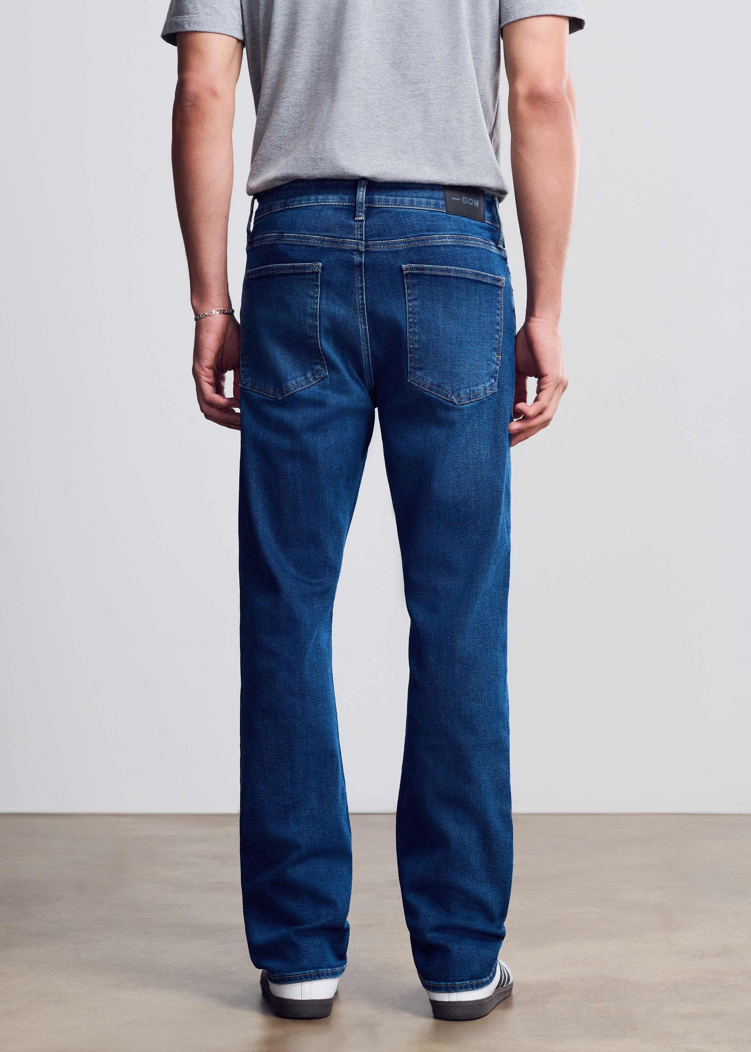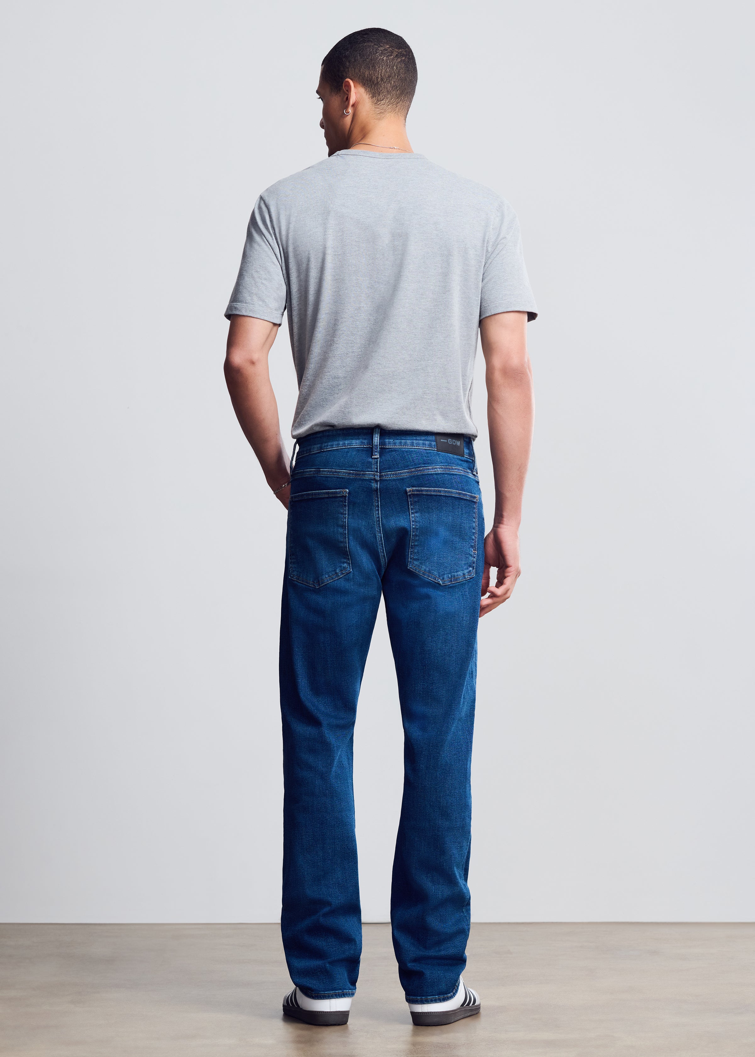 This dark wash straight leg is the jean you’ll reach for again and again. Designed with a relaxed mid rise and durable denim, it’s finished with contrast stitching for a classic look and lasting ease.