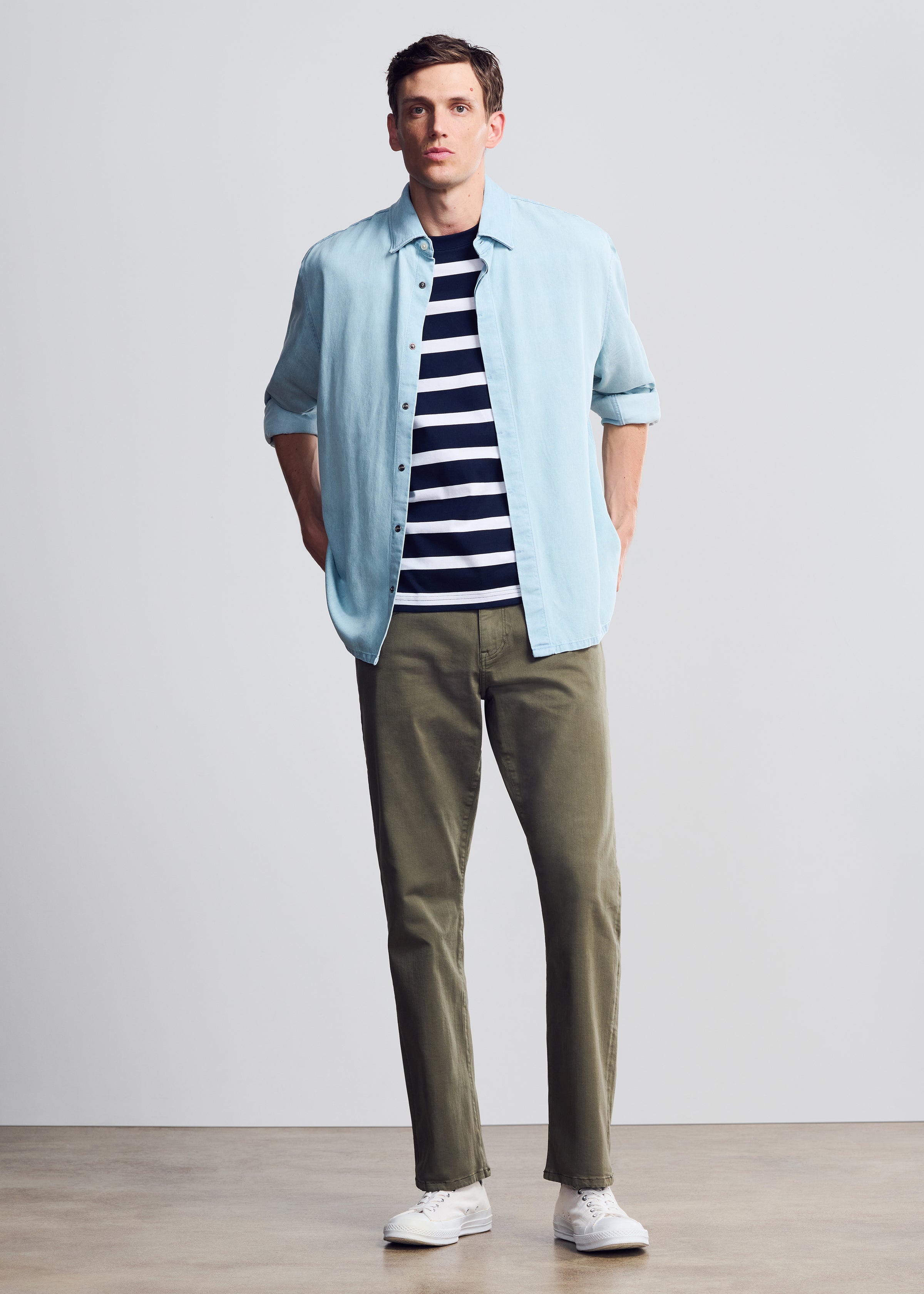 The jeans that do it all. Muted olive green and soft denim make this relaxed straight leg easy to take from day to night.