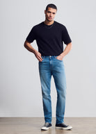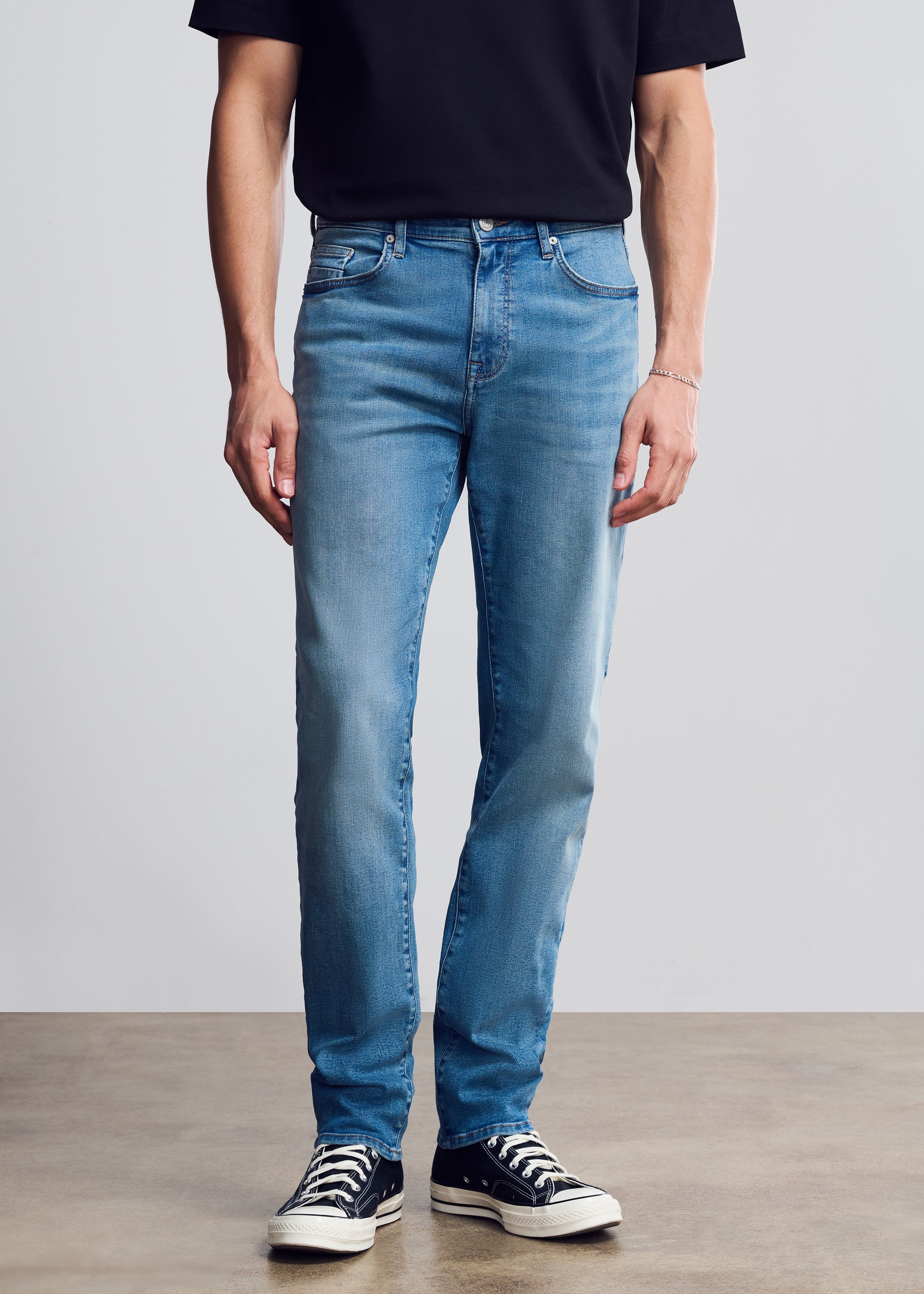 An athletic fit you can rely on, finished in a medium blue wash for classic style on the move. Cut with a tapered leg and built-in stretch, it moves effortlessly while maintaining a clean silhouette.