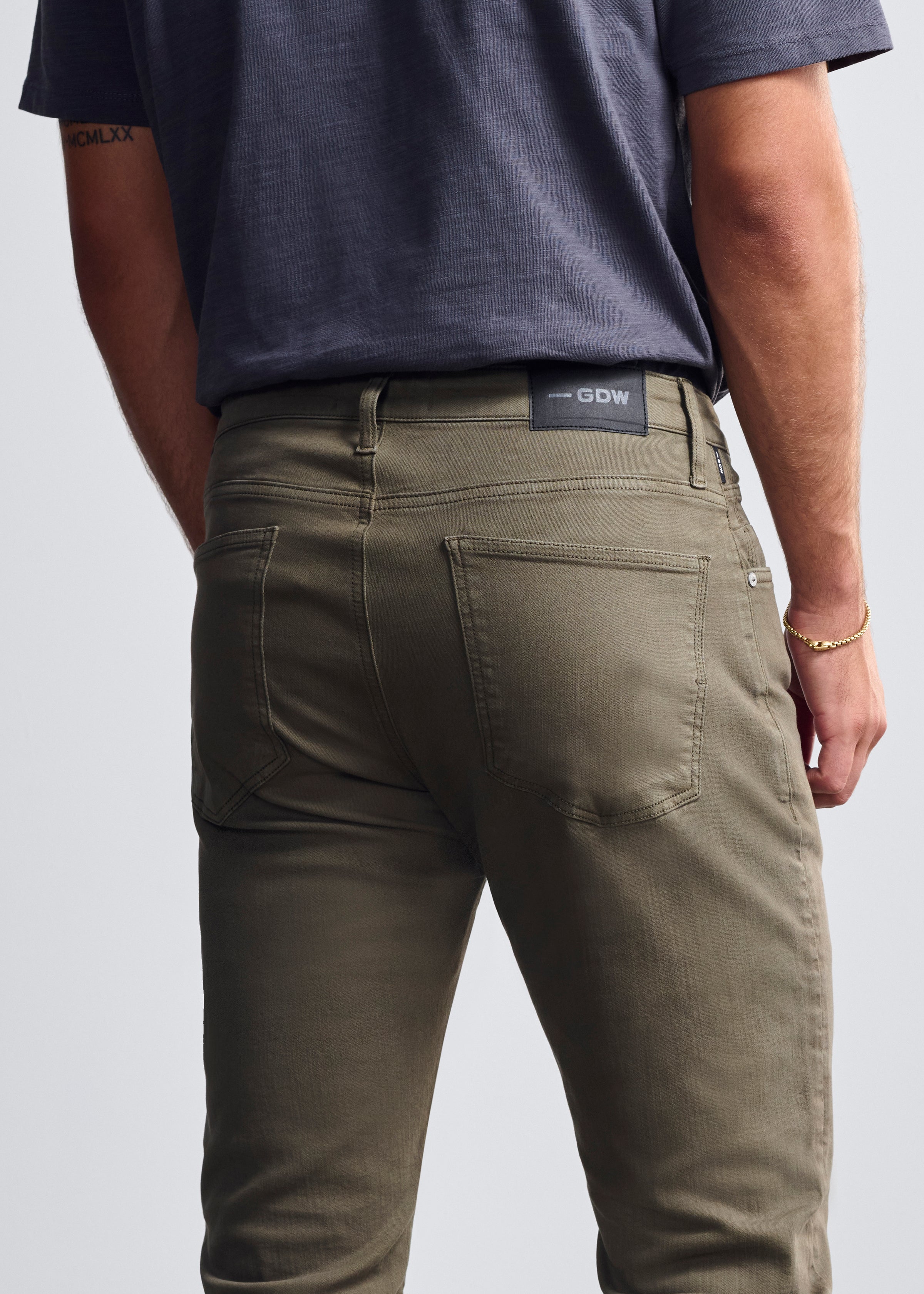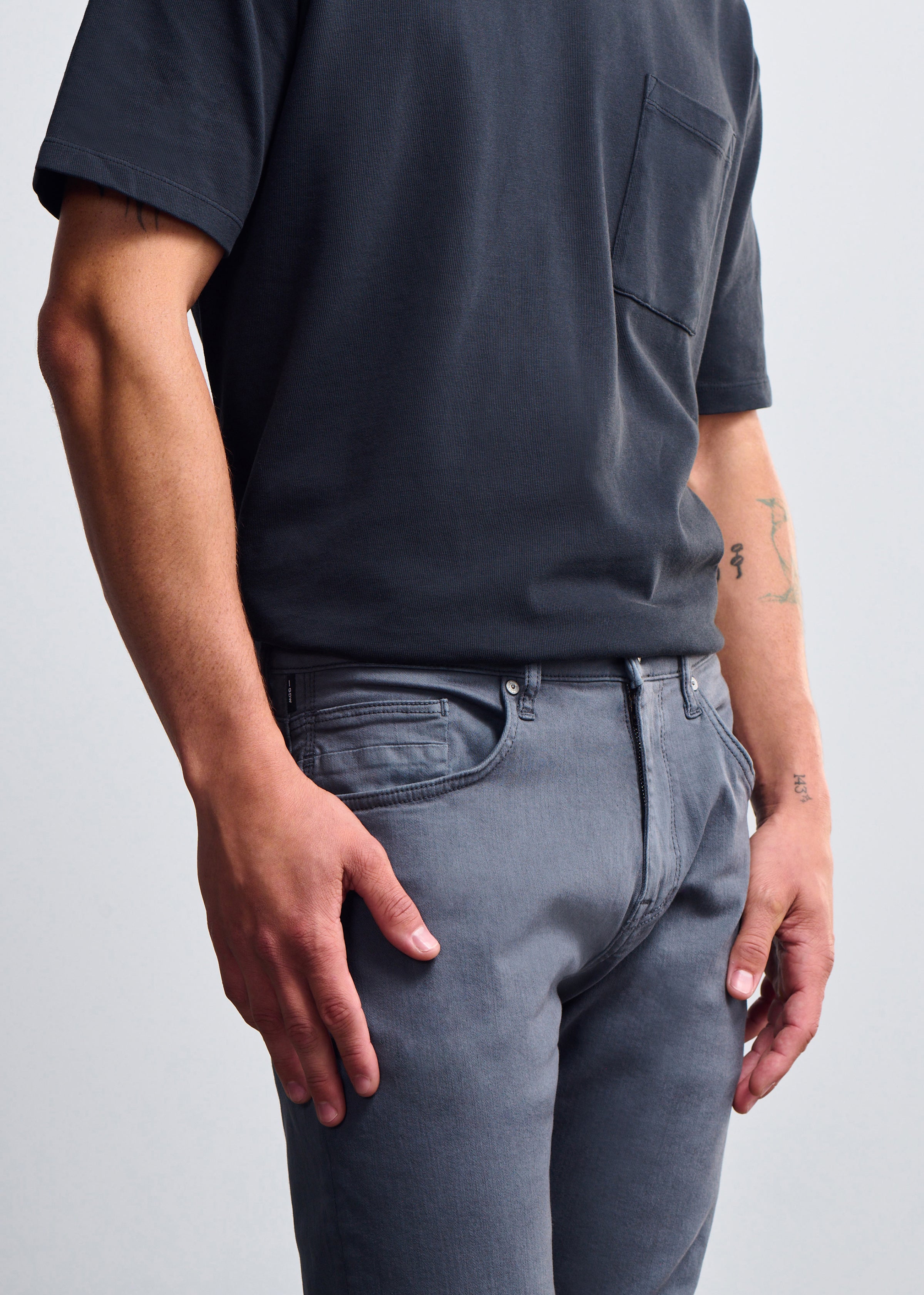 This simple, effortless fit is slim through the hip, thigh, and leg opening for a flattering look that stretches to fit your lifestyle.
