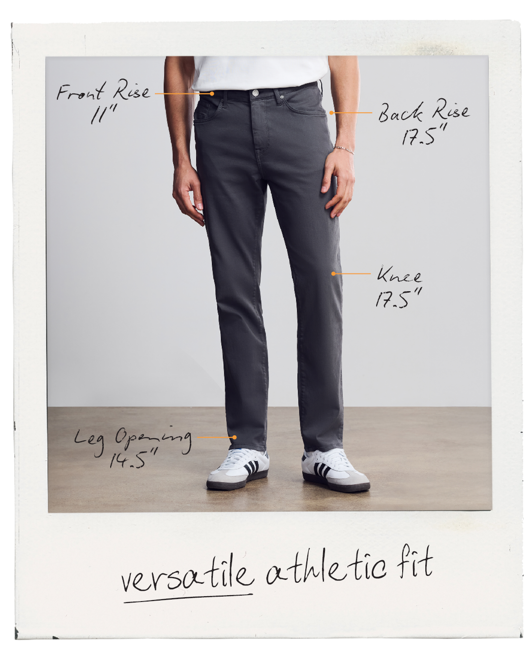 Designed with an athletic build in mind, this fit offers room through the hip and thigh with a clean, tapered ankle.