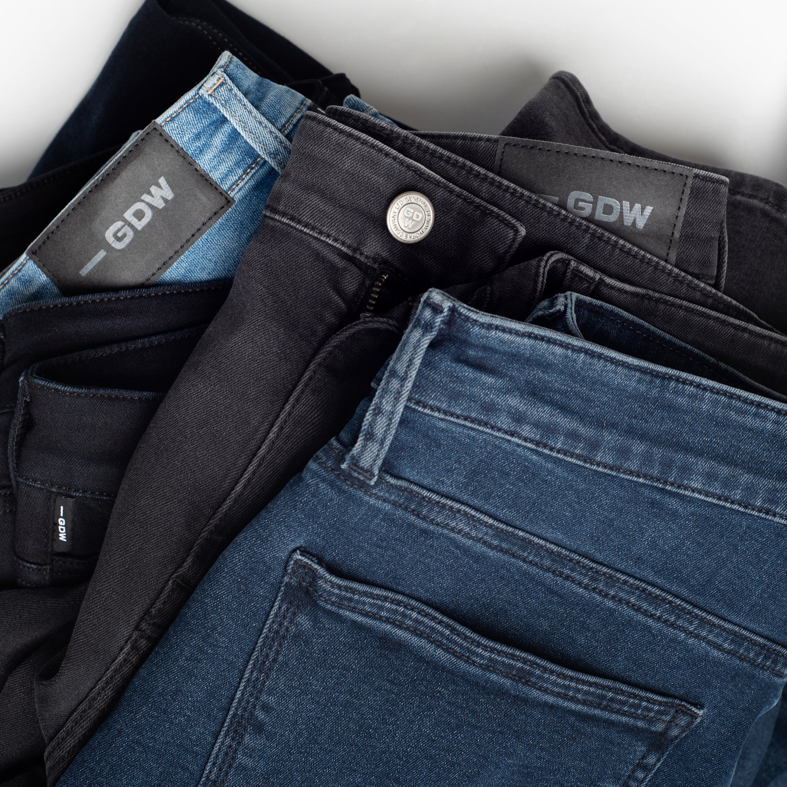 GDW is designed by some of the best denim experts in the business, with you in mind: Your life, your style, your comfort, your wallet. Simply put, we make denim that stretches to fit your lifestyle. We are proud to offer three striking silhouettes in a variety of washes for whatever fits your mood. Denim has always been designed to function — to allow people to move, to work, and to live freely. That's why we design timeless fits to suit any body and any style. For the commuters, the workers, the creatives — for everyone. Every pair is expertly crafted to become the jeans you feel most yourself in.