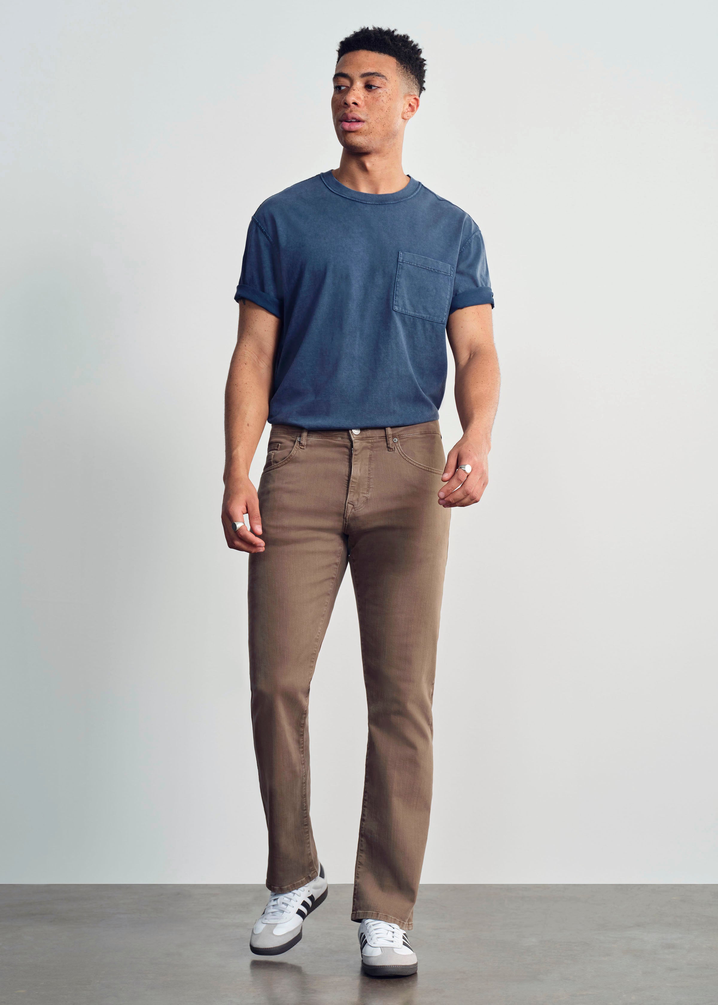 Where comfort meets versatility. Straight leg jeans in a brown hue bring a warm finish to any outfit.