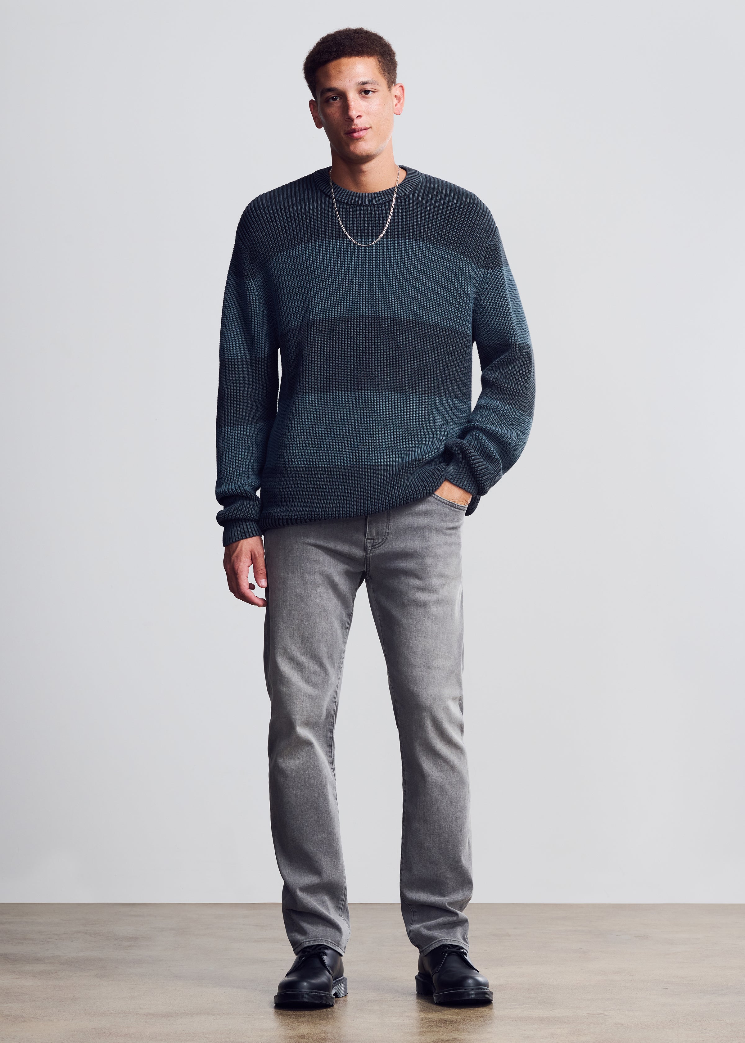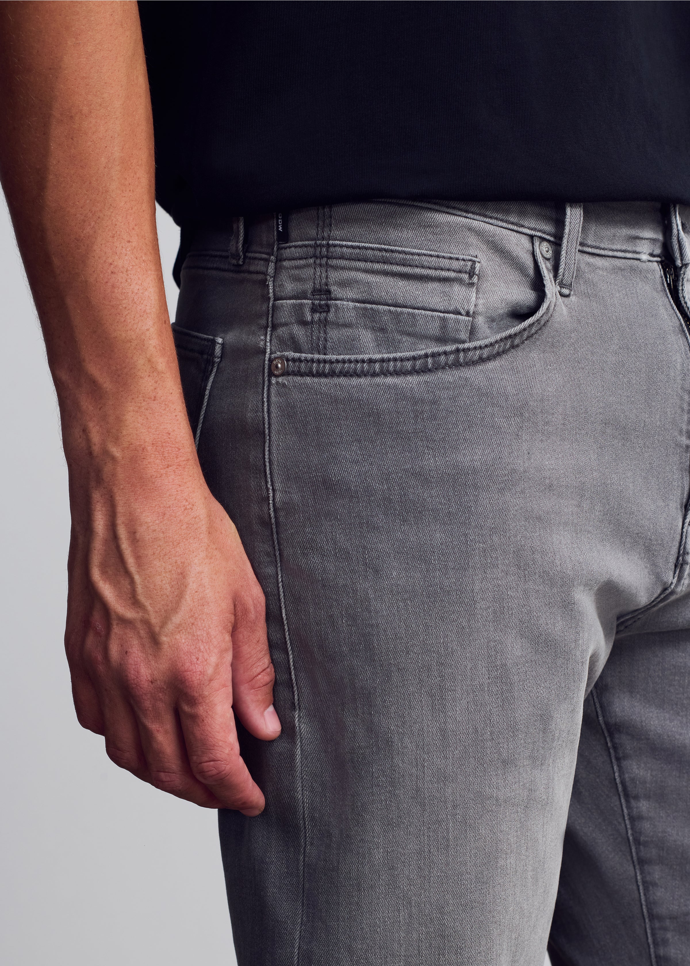 With a balanced fit and classic straight leg, Bridge is crafted from smoky light grey denim with a soft brushed finish. Durable and versatile, this jean is made to keep up with your schedule.