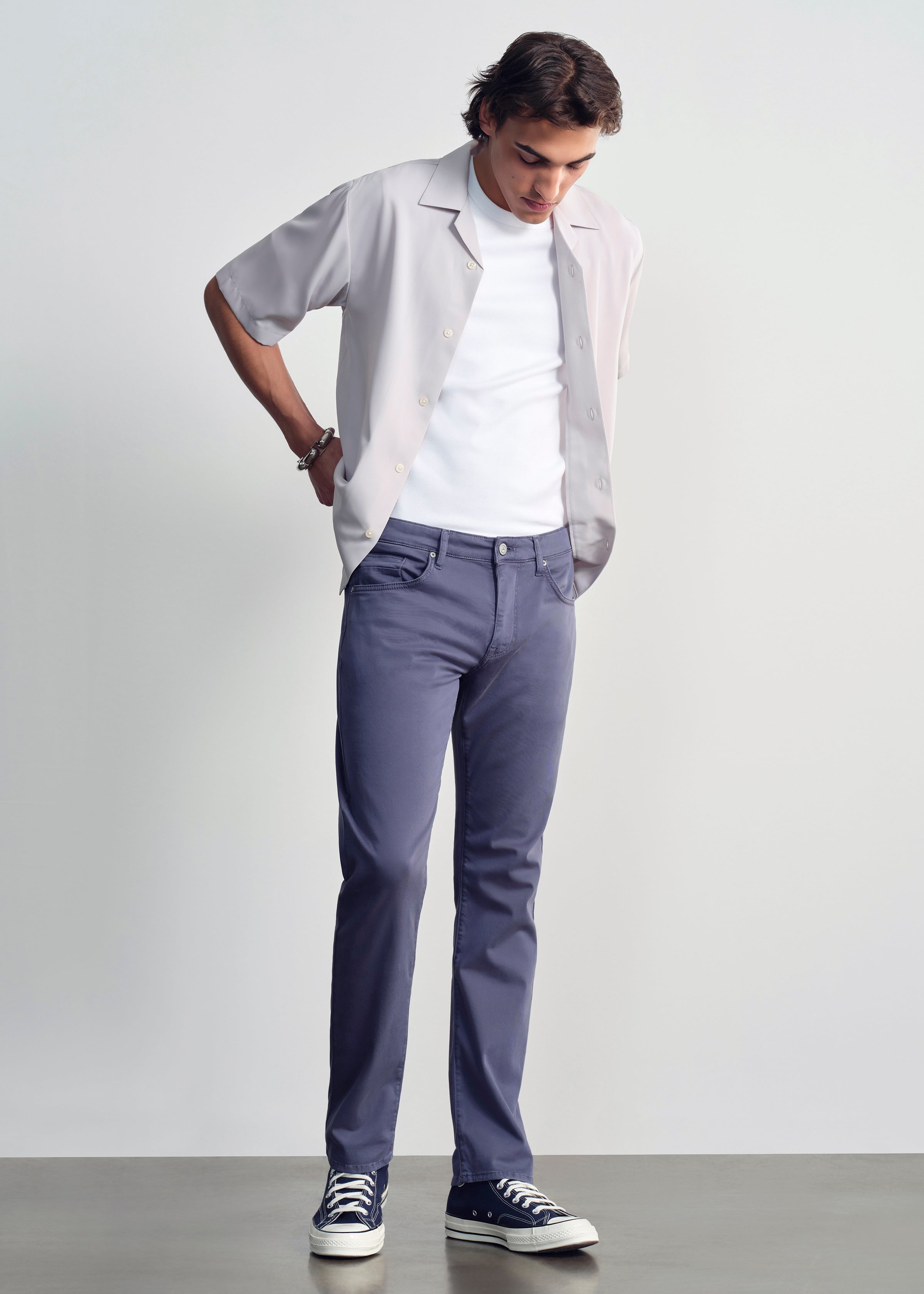 Easily transition from day to night with Bridge in twill. This versatile slate blue pant features a straight leg and soft fabric, made to keep up with wherever the day takes you.